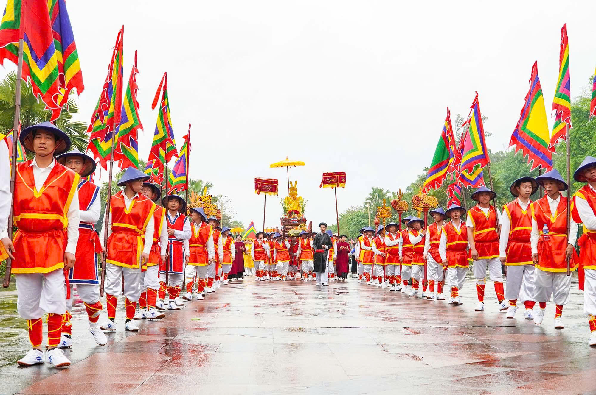 Lễ rước kiệu có sự tham gia đông đảo của nhân dân và du khách