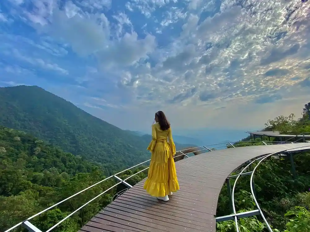 Đi trên chiếc cầu mây lơ lửng có lẽ là trải nghiệm được nhiều du khách yêu thích nhất, không chỉ là nơi check-in Cầu Mây cực xịn sò, còn là nơi mang lại cảm giác an yên cho tâm hồn của bạn. Chiếc cầu dài cùng vô số góc chụp khác nhau bạn có thể thỏa sức tạo dáng cho bộ ảnh của mình mà không sợ đụng hàng. Diện cho mình một bộ váy dài, thả lỏng cơ thể vào chiếc võng lưới được đưa ra giữa núi rừng Tam Đảo, trông bạn sẽ không khác gì một cô tiên nữ đang ở ngay giữa chốn bồng lai tiên cảnh của chính mình. Những tấm ảnh check-in hot hit tại nấc thang lên thiên đường không chỉ làm mưa làm gió tại Đà Lạt, mà nấc thang thiên đường tại Tam Đảo Cầu Mây cũng làm siêu lòng không biết bao nhiêu du khách, với background siêu xịn từ những đám mây “khổng lồ” tại Tam Đảo.