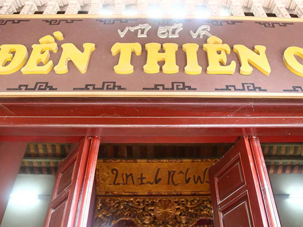 Đền Thiên cổ tọa lạc trên một quả đồi nhỏ ven đường thôn Hương Lan, xã Trưng Vương, thành phố Việt Trì.