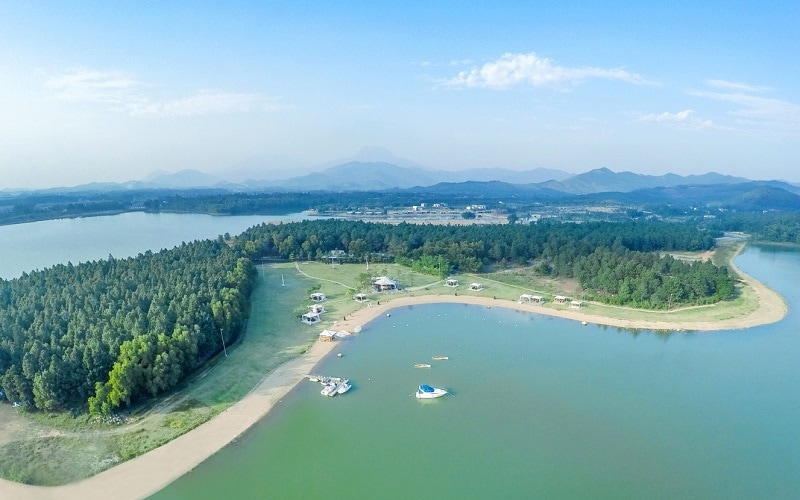 Hồ Đại Lải trải rộng mênh mông, trong xanh bao quanh bởi rừng thông bạt ngàn sẽ khiến bạn liên tưởng đến những câu chuyện bí ẩn không lời giải đáp. Bầu không khí trong lành dễ chịu cùng cảnh sắc thiên nhiên thơ mộng hữu tình sẽ là địa điểm nghỉ dưỡng lý tưởng cho những ai muốn rời xa cuộc sống thành thị xô bồ. Tuy là hồ nhân tạo, nhưng hồ Đại Lải lại sở hữu phong cảnh thiên nhiên đẹp xao xuyến lòng người, vì thế được đưa vào khai thác phát triển du lịch và đã trở thành một trong những điểm du lịch Phú Thọ được yêu thích nhất. Sở hữu diện tích mặt hồ vô cùng rộng lớn cùng núi non hữu tình sẽ khiến du khách ngỡ ngàng khi đến đây vì phong cảnh tuyệt đẹp. Mặt nước trong xanh in bóng hàng cây, xen lẫn tiếng gió thổi rì rào tạo một không gian thoải mái rất thích hợp cho những ngày muốn nghỉ ngơi sau nhiều giờ học tập và làm việc căng thẳng.