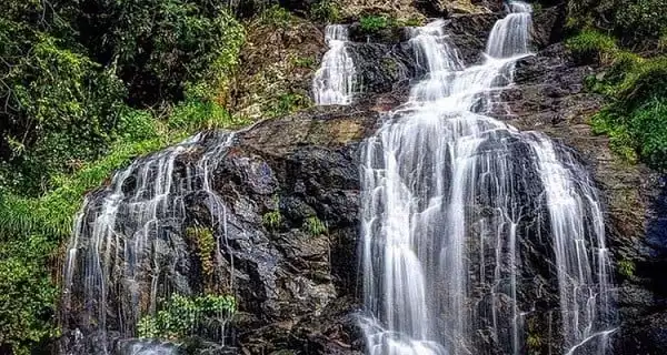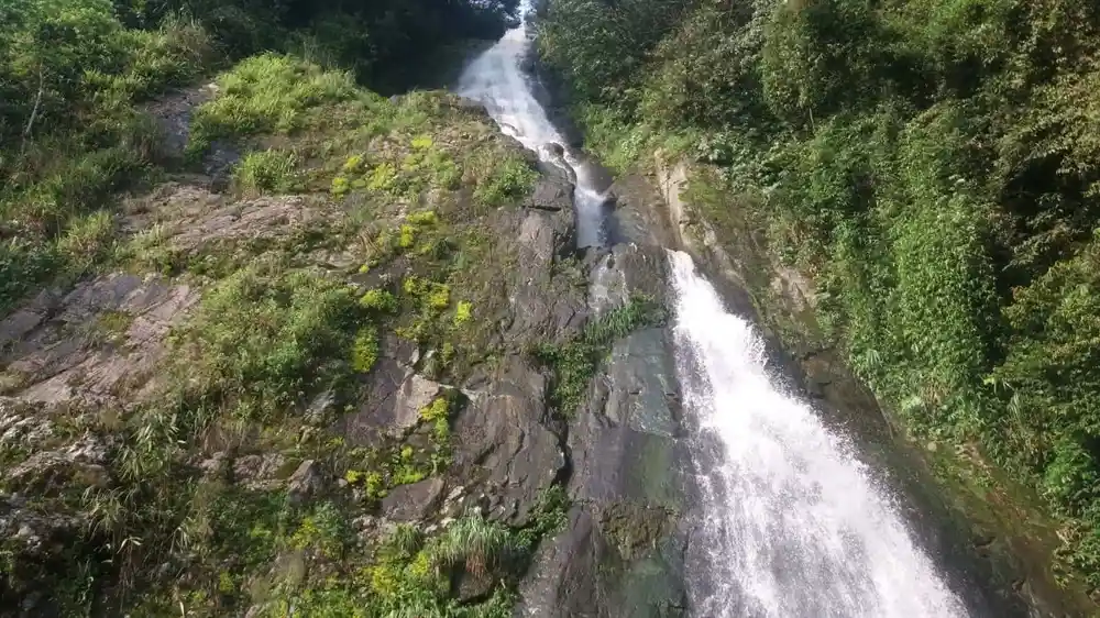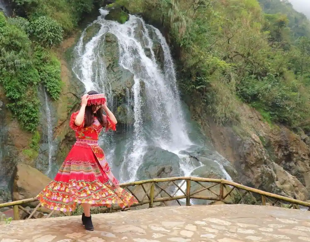 Thiên nhiên đã ban tặng cho nơi đây một lớp áo xanh mướt, ôm trọn dòng thác như đang ôm ấp, vuốt ve mái tóc mềm của một cô gái. Nơi đây không chỉ có tiếng róc rách của dòng nước chảy, mà còn có cả âm thanh hòa ca của các loài chim, mang đến cho bạn một buổi hòa nhạc êm tai, đầy thư thái. Để thấy được vẻ đẹp bao quát của cảnh đẹp nơi đây, bạn có thể tìm cho mình một chỗ đứng an toàn nơi đỉnh thác, tại đây bạn có thể phóng tầm mắt nhìn rõ từng chi tiết của tháp truyền hình Tam Đảo, cánh đồi su su yên bình, hay những ngôi nhà nhỏ lấp ló giữa rừng thông.