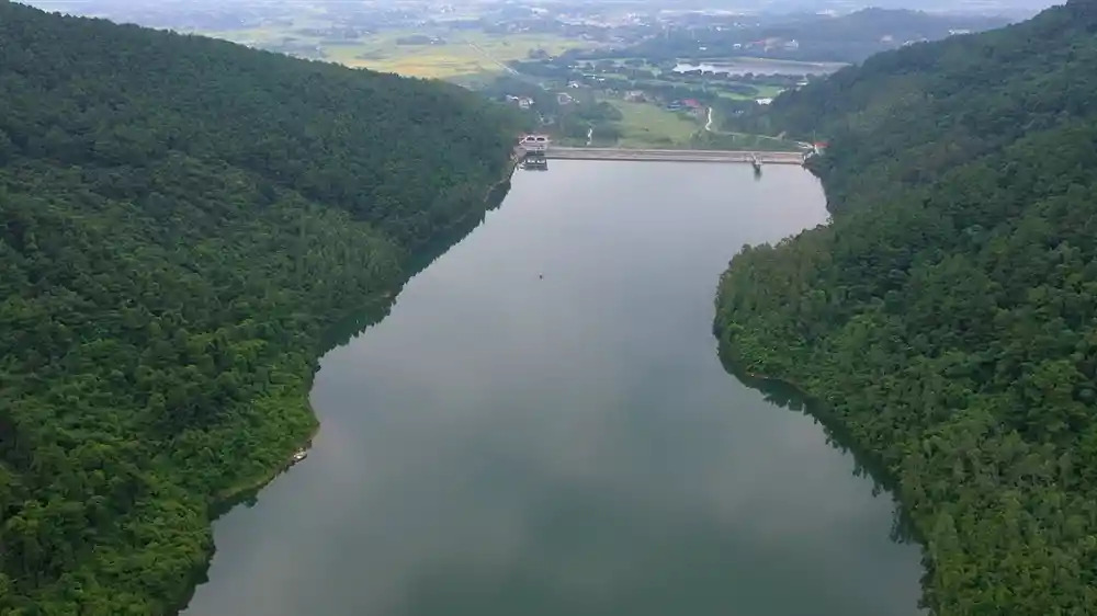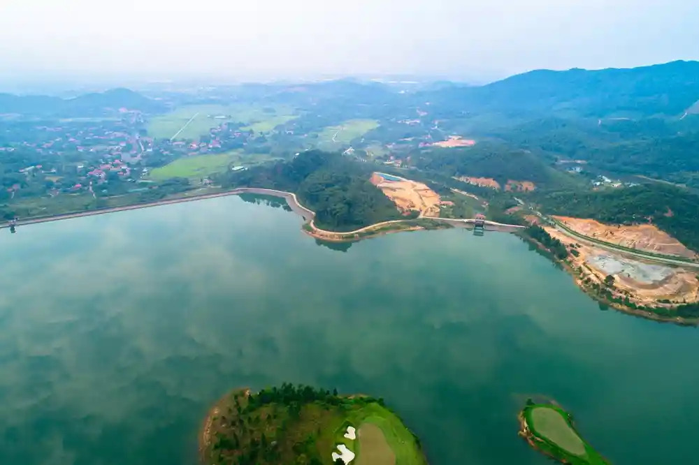 Hồ Thanh Lanh – khu sinh thái Nam Tam Đảo có gốc tích là Thành Quận Hẻo, một thung lũng nằm giữa những dãy núi thấp. Hồ được xây dựng năm 2000 với diện tích 1.200ha, cung cấp nước tưới tự chảy cho các xã Trung Mỹ, Bá Hiến, Thiện Kế, góp phần ngăn chặn lũ cho vùng đồng bằng. Nước hồ xanh trong êm đềm, hoang sơ mà huyền ảo, bờ hồ thoai thoải, là điểm thú vị để giăng câu và thư giãn, đắm trong cảnh thiên nhiên tươi đẹp, thơ mộng. Với vị trí nằm gần thị trấn Hương Canh, trung tâm xã, có tuyến đường sắt Hà Nội – Việt Trì, đường thủy tuyến Hà Nội – Việt Trì chạy qua, thuận lợi cho giao thông đối ngoại, hồ Thanh Lanh hiện nay đang triển khai dự án Du lịch sinh thái Nam Tam Đảo, gắn kết với các khu du lịch Đại Lải, Tam Đảo, sân golf Tam Đảo, Tây Thiên tạo thành chuỗi vui chơi giải trí, văn hoá, du lịch, thu hút nhiều du khách đến tham quan, vãn cảnh.