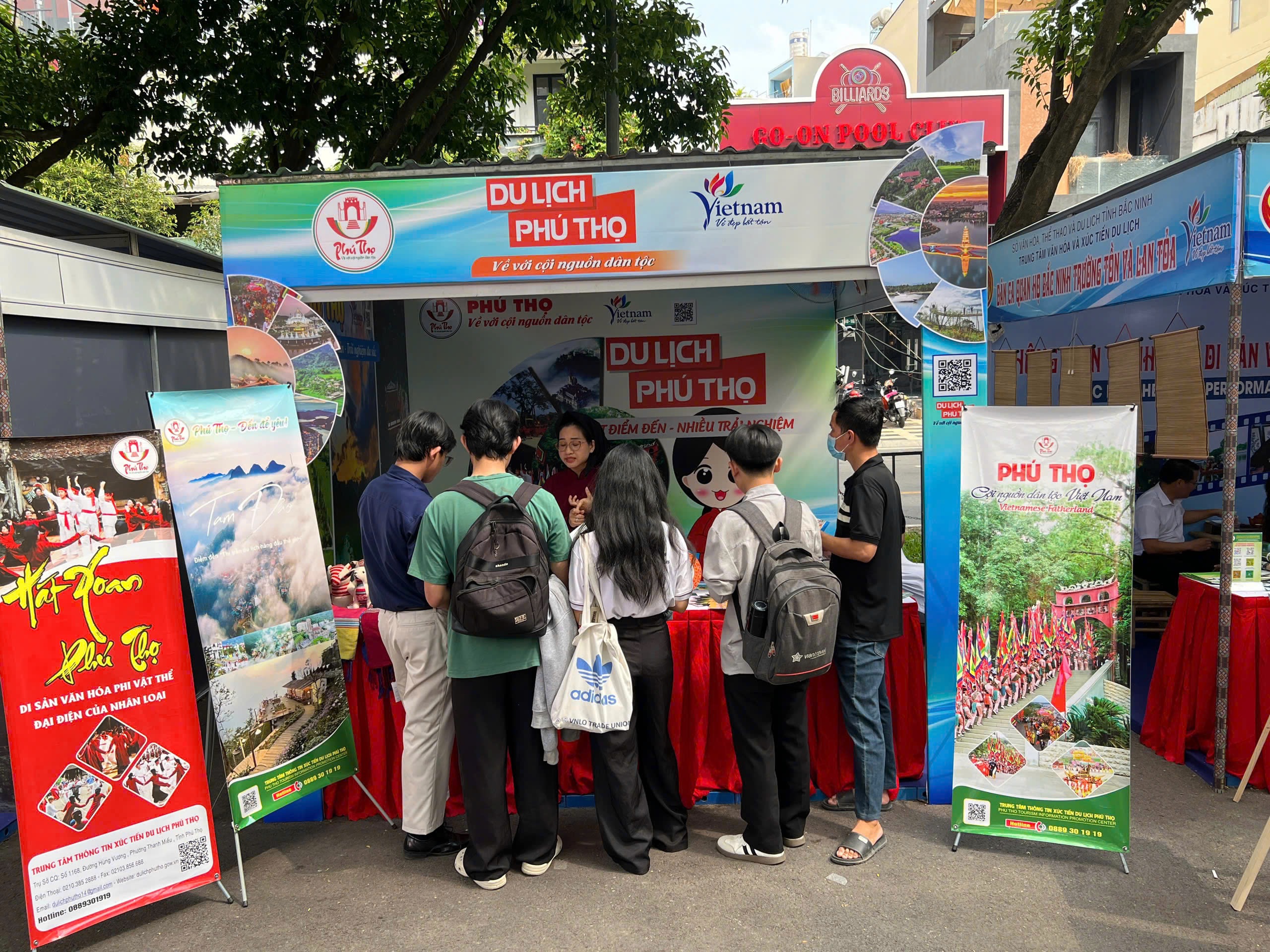 Tham gia sự kiện năm nay, Du lịch Phú Thọ tập trung tổ chức quảng bá các sản phẩm du lịch, các tour du lịch đặc trưng, các điểm đến tiêu biểu của địa phương, đặc biệt giới thiệu văn hóa – con người Đất Tổ thông qua hệ thống ấn phẩm tờ rơi tập gấp, standee,… thu hút lượng lớn du khách tham quan tìm hiểu. Việc tuyên truyền quảng bá du lịch đã tập trunghỗ trợ thông tin, trao đổi liên kết với các đối tác du lịch nhằm quảng bá các tour du lịch văn hóa vềnguồn như: tour du lịch đêm Đền Hùng; tour trải nghiệm nghi lễ văn hóa truyền thống; tour khám phá, trải nghiệm du lịch sinh thái cộng đồng hấp dẫn thú vị; giới thiệu các điểm du lịch văn hóa cộng đồng trên địa bàn tỉnh như: Khu du lịch quốc gia Đền Hùng, Khu Du lịch quốc gia Tam Đảo, Vườn quốc gia Xuân Sơn, Làng cổ Hùng Lô, Khu du lịch Hồ Hoà Bình, Bản Lác,… Đồng thời Phú Thọ giới thiệu, quảng bá một số sản phẩm du lịch nông nghiệp nông thôn, sản phẩm OCOP, quà tặng lưu niệm, du lịch thủ công truyền thống tiêu biểu, đặc trưng mang thương hiệu của tỉnh như: thịt chua Thanh Sơn, chè Long Cốc, các sản phẩm thổ cẩm thủ công,…