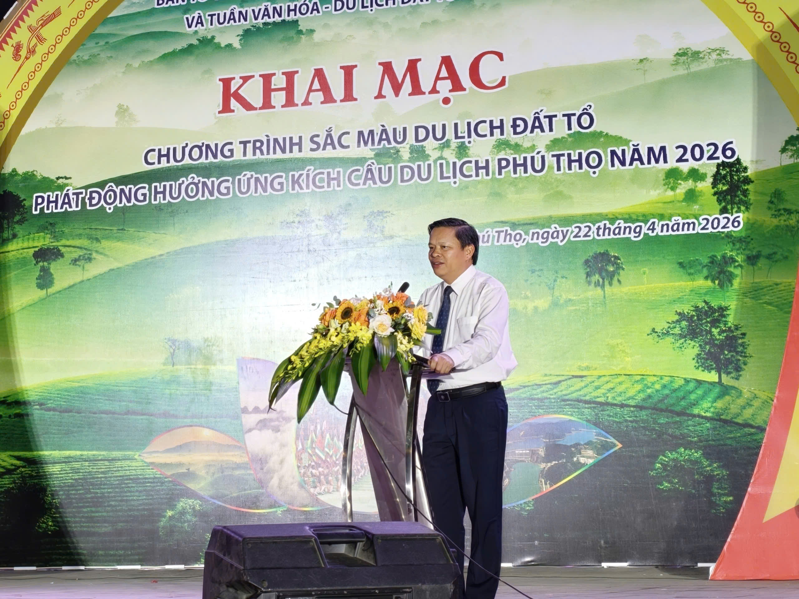 Tối ngày 22/4/2026 tức 06/3 âm lịch năm Bính Ngọ, tại khu vực sân khấu công viên Văn Lang, đường Trần Phú, phường Việt Trì, Sở Văn hóa, Thể thao và Du lịch tỉnh Phú Thọ đã tổ chức Khai mạc chương trình “Sắc màu Du lịch Đất Tổ – Phát động hưởng ứng kích cầu Du lịch Phú Thọ năm 2026”.