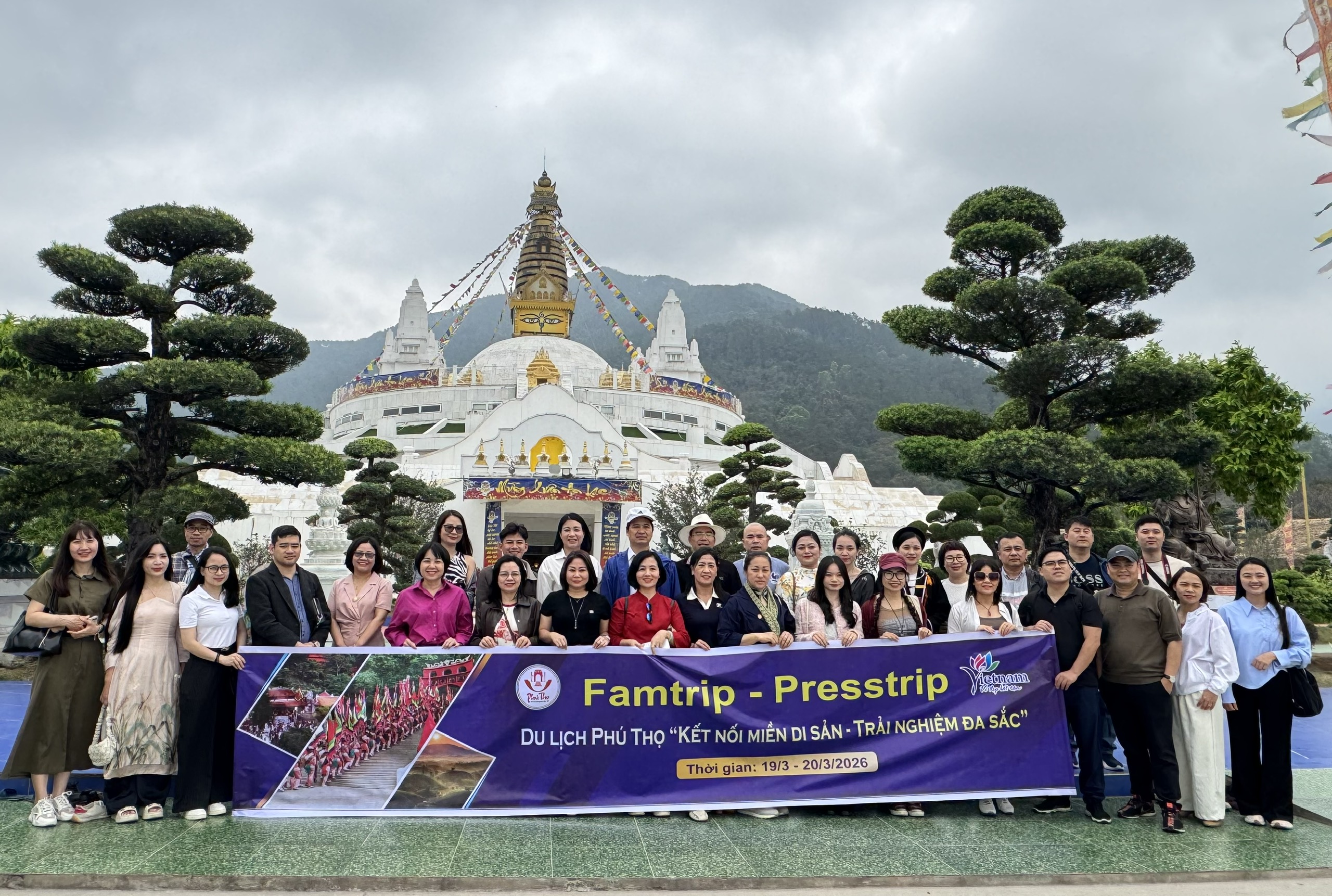 Đoàn Famtrip – Presstrip quy tụ các doanh nghiệp lữ hành, cơ quan thông tấn báo chí, truyền thông và những người làm du lịch uy tín. Trong hành trình trải nghiệm, đoàn đã tham quan khảo sát sản phẩm du lịch, dịch vụ du lịch, tìm hiểu giá trị văn hóa lịch sử độc đáo và cảnh quan thiên nhiên tại Khu di tích lịch sử quốc gia đặc biệt Đền Hùng, Khu di tích quốc gia đặc biệt danh thắng Tây Thiên, Điểm du lịch văn hóa cộng đồng Hùng Lô, Đồi chè Long Cốc, Khu du lịch nước khoáng nóng Thanh Thủy. Qua đó, các thành viên có cơ hội trực tiếp cảm nhận vẻ đẹp thiên nhiên, chiều sâu lịch sử và bản sắc văn hóa đặc trưng của vùng Đất Tổ.