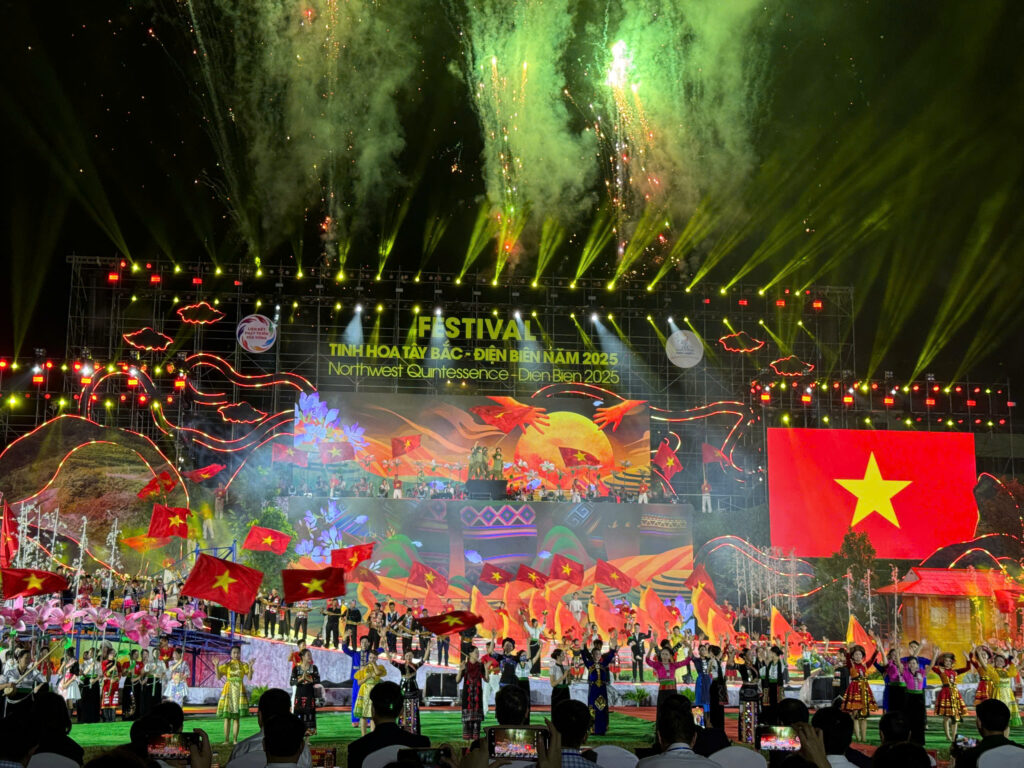 Chương trình Festival “Tinh hoa Tây Bắc – Điện Biên 2025” đã khai mạc vào tối ngày 19/9 tại Sân vận động tỉnh Điện Biên, với chương trình nghệ thuật đặc sắc được dàn dựng công phu, kết hợp truyền thống và hiện đại, tái hiện vẻ đẹp thiên nhiên, lịch sử hào hùng và văn hóa đa sắc màu của Tây Bắc. Đặc biệt, đêm khai mạc có sự góp mặt của nghệ sĩ nhiều tỉnh, thành và các đoàn nghệ thuật quốc tế với điểm nhấn là màn pháo hoa nghệ thuật rực rỡ.
