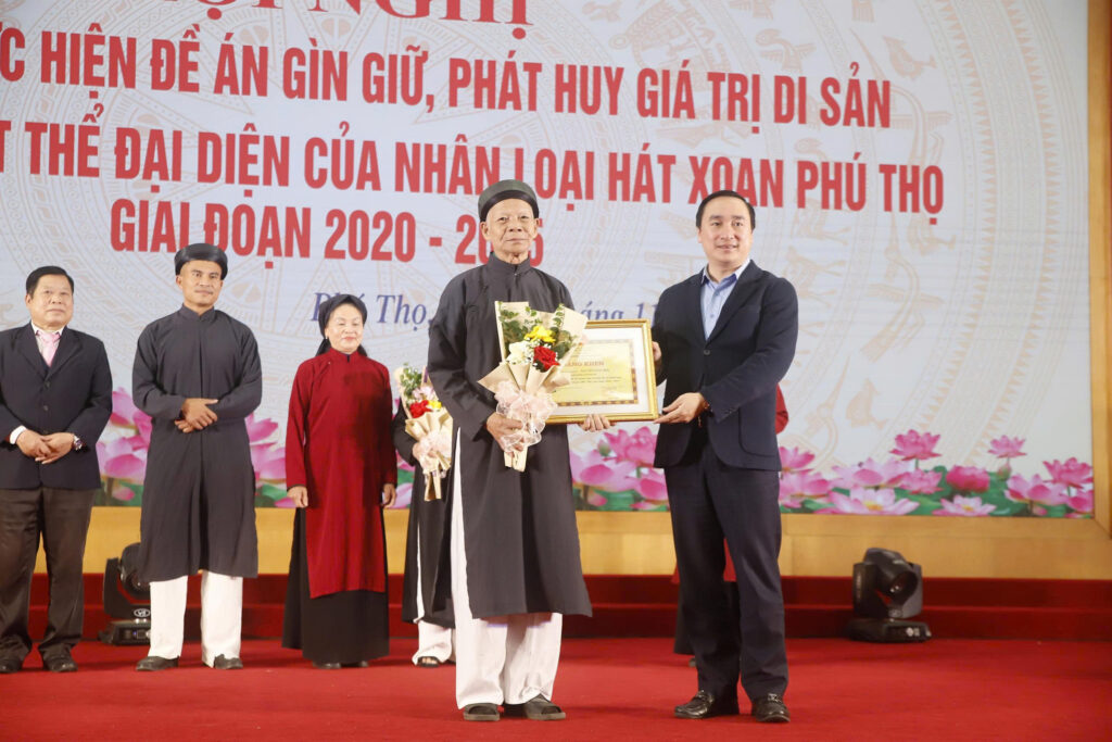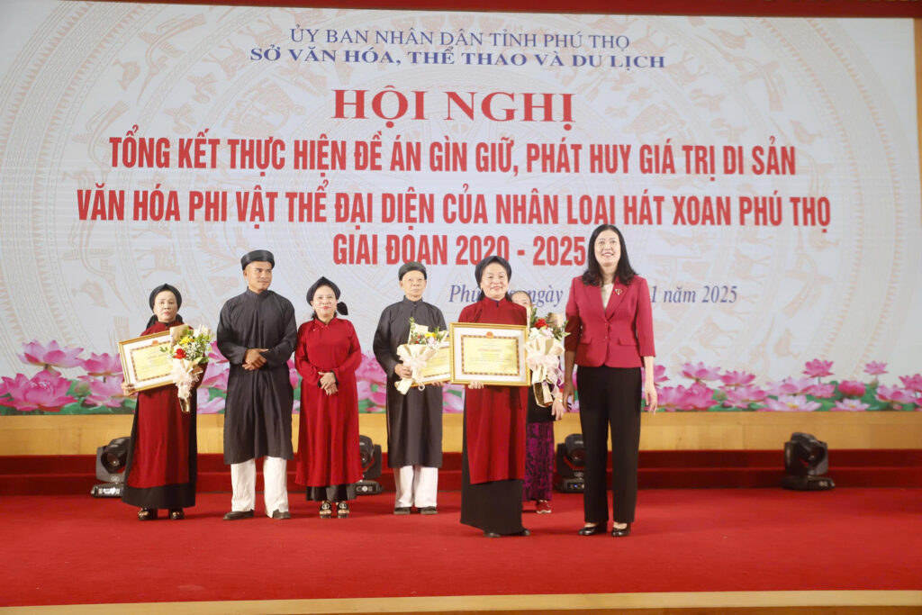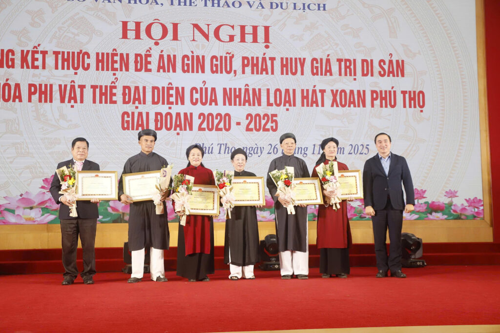 Nhân dịp này, UBND tỉnh đã trao tặng Bằng khen, Sở Văn hóa, Thể thao và Du lịch trao tặng giấy khen cho nhiều cá nhân, tập thể có thành tích xuất sắc trong công tác gìn giữ, phát huy giá trị di sản văn hóa phi vật thể đại diện của nhân loại Hát Xoan Phú Thọ giai đoạn 2020 – 2025./.